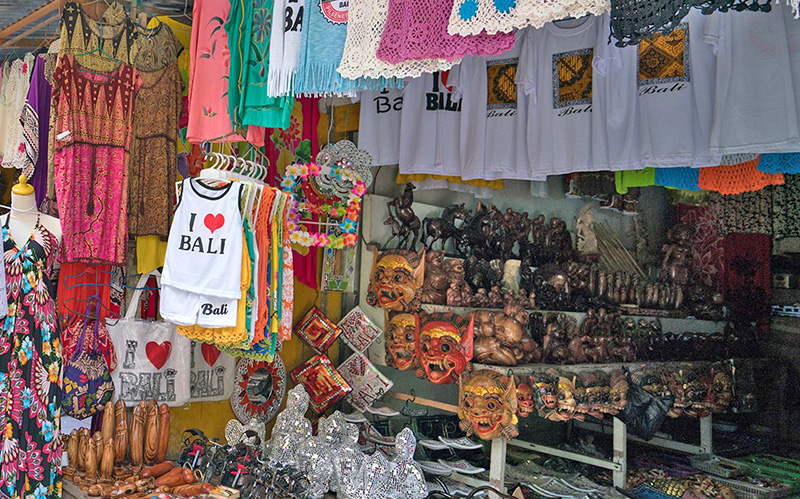 Ubud Art Market, locally referred to as ‘Pasar Seni Ubud’ is located opposite the the Puri Saren Royal Ubud Palace and is open daily. Here you can find beautiful silk scarves, lightweight shirts, handmade woven bags, baskets or hats; statues, kites and many other hand-crafted goods. Most of the goods found at the Ubud Market are made in the neighbouring villages of Pengosekan, Tegallalang, Payangan and Peliatan. The location of the Ubud Art Market which is centred among the art producing villages, and being just opposite the royal palace which is a centre point to Ubud itself, make it a strategic shopping place for Balinese handicrafts and souvenirs